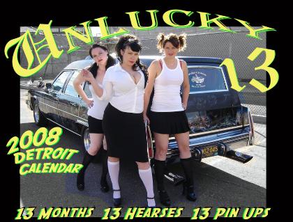 | SPAG - DETROIT These were made for the Spag Detroit, Unlucky 13 calender release party. What a great night Hot Girls, Hearses, Booze and Great Music!!! If you did not make it there check out some pics below and Go to there site and pick up a calender. Check out the Detroit Blueblood Ad in November. I can't wait till Jan to put mine up! Get Yours Now!!! Click HERE |